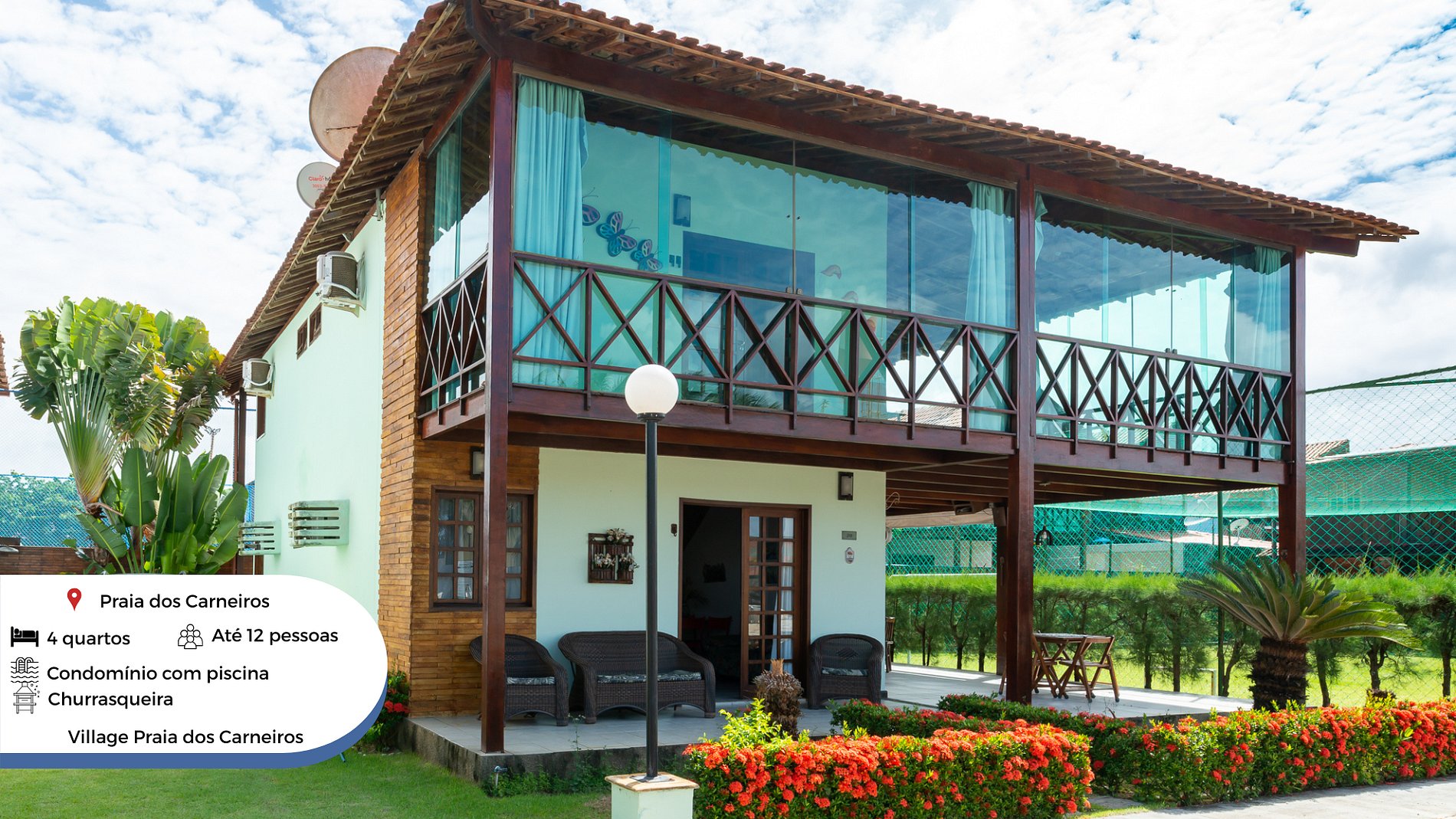 The beautiful house has 4 bedrooms (3 suites and 1 double), 4 bathrooms, sleeps up to 7 people and is located in the Village II condominium, on Carneiros beach! One of the most beautiful beaches in Brazil, with several tourist attractions that will make your trip an incredible experience.