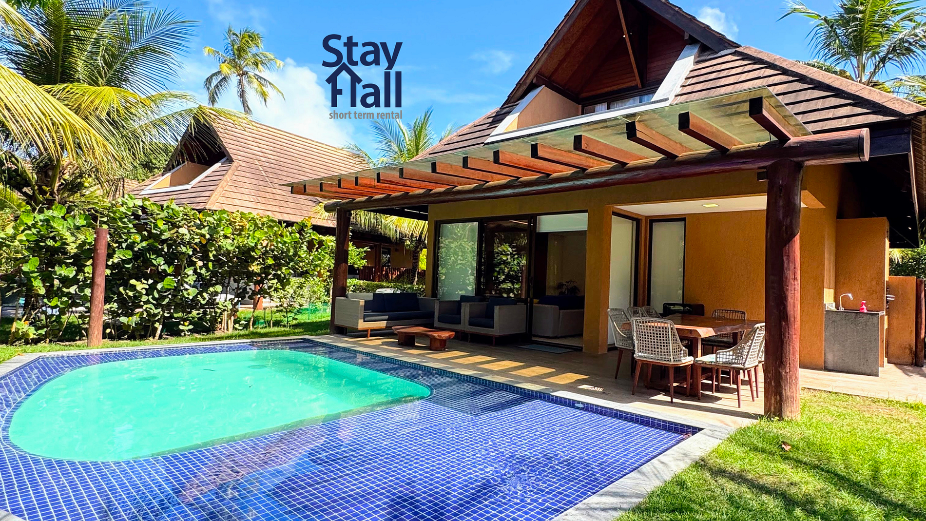 Este bangalô acomoda até 10 hóspedes com total comodidade, distribuídos em 3 quartos (sendo 2 suítes), 4 banheiros e uma charmosa área externa com terraço, piscina privativa e churrasqueira exclusiva. Um refúgio completo para quem deseja aproveitar o verão durante todo o ano com conforto e tranquilidade.